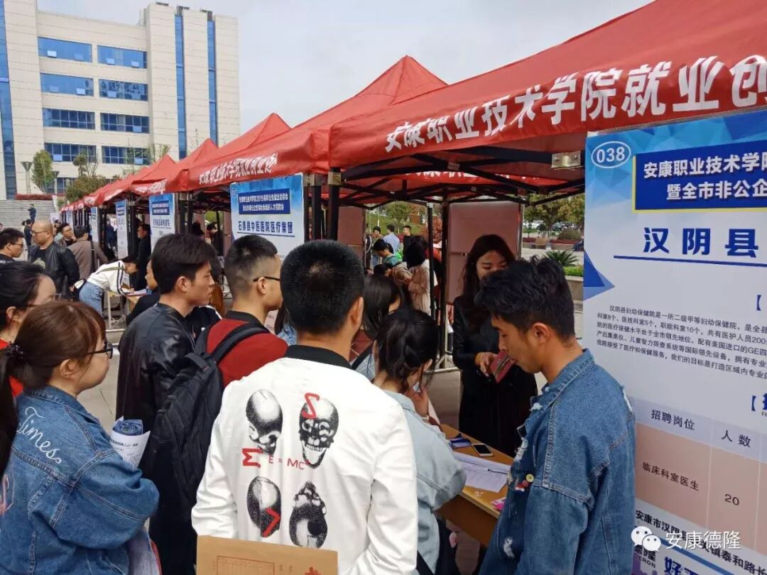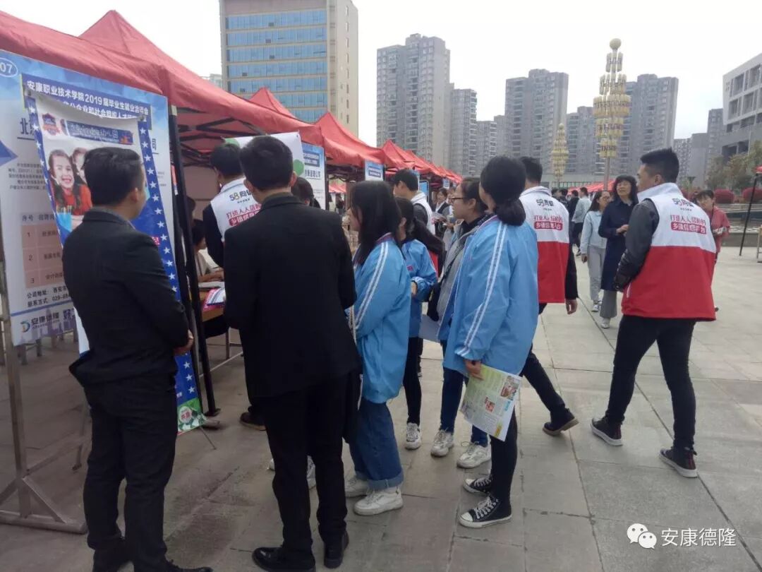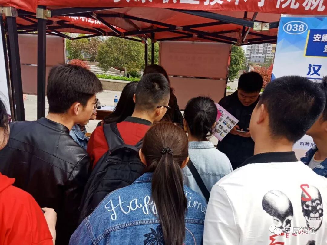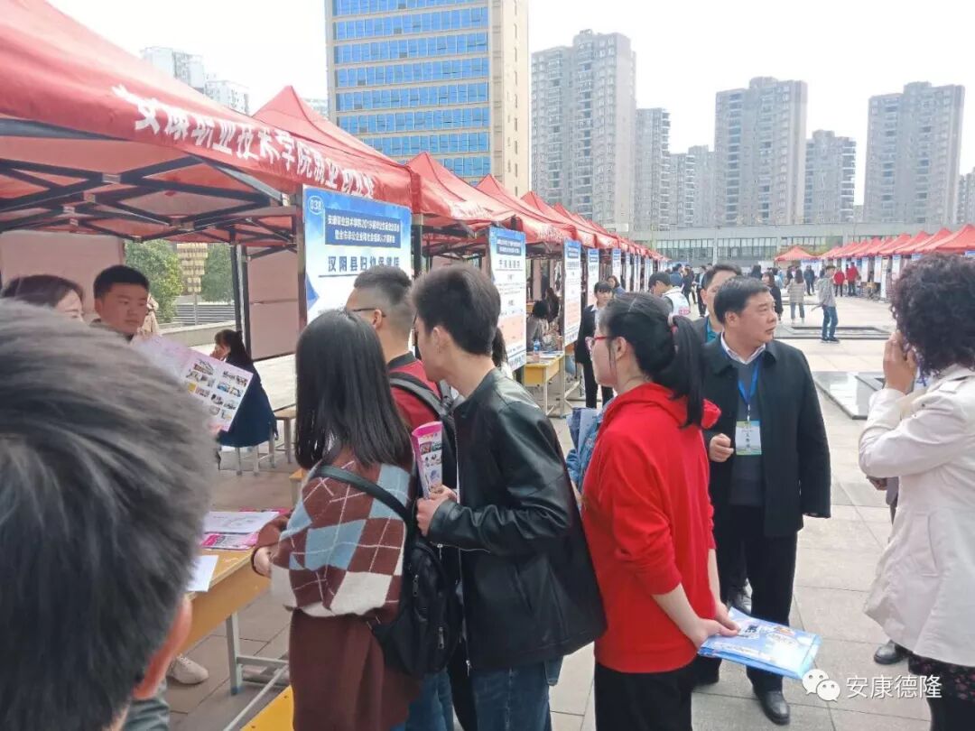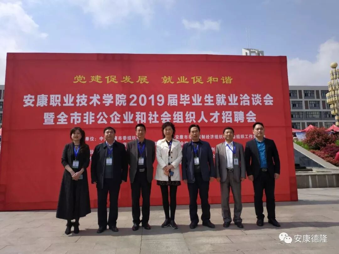 2019年4月4日,由中共安康市委組織部、安康市人社局、安康職業(yè)技術(shù)學(xué)院主辦的“安康職院2019屆畢業(yè)生就業(yè)洽談會(huì)暨全市非公企業(yè)和社會(huì)組織人才招聘會(huì)”在校園內(nèi)部成功舉辦。安康職業(yè)技術(shù)學(xué)院黨委副書(shū)記張慧麗、副院長(zhǎng)瞿德明、趙德安、黃緒山,就業(yè)創(chuàng)業(yè)處處長(zhǎng)汪顯林等領(lǐng)導(dǎo)蒞臨招聘會(huì)現(xiàn)場(chǎng)指導(dǎo),德隆公司總經(jīng)理李德奎全程陪同。