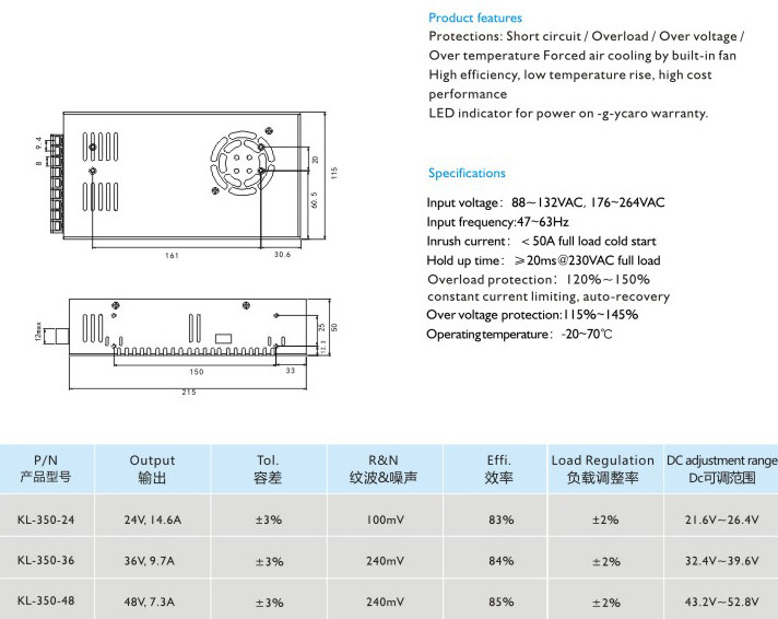 高效率、低溫升高性價(jià)比 適用于LED顯示、工業(yè)控制 輸入電壓:88-132VAC,176-264VAC 輸入頻率:47~63Hz 沖擊電流:<50A滿載冷態(tài) 保持時(shí)間:≥20ms@230VAC滿載 過載保護(hù):120%-150%限流保護(hù),自動恢復(fù) 過壓保護(hù):115%~145% 運(yùn)行溫度:-20-70℃" />