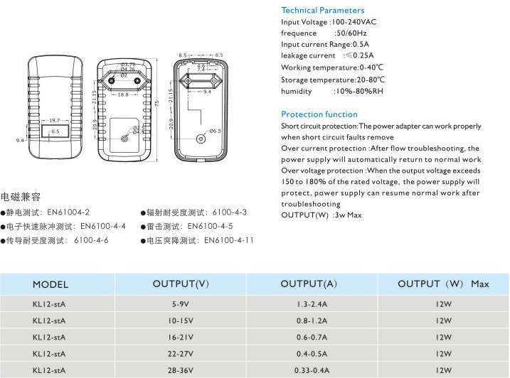 短路保護(hù): 電源適配器在短路解除時能正常工作恢復(fù)